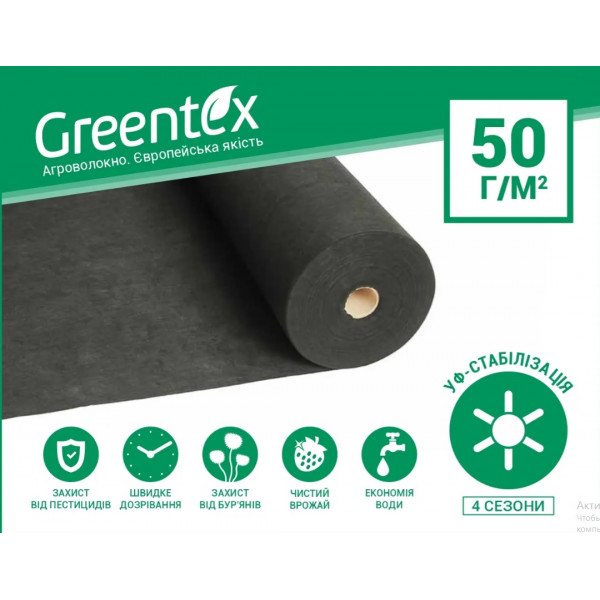 Агроволокно Greentex черное, плотность 50 гр/м2 (100 м)