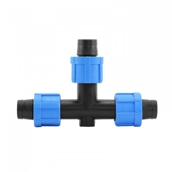 Самозажимной тройник для капельной ленты d16 мм устанавливается в точке вращения ленты, способствует свободному стоку воды.
