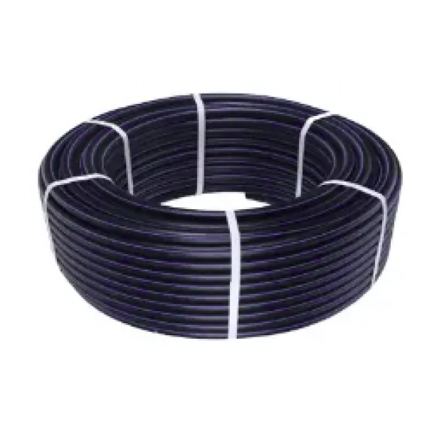 Труба полиэтиленовая 90 мм*5,1 мм для подачи холодной воды, черная с синей полосой 8 атм 100 метров в бухте, производится из качественного сырья, применяется для подземного водопровода, скважин, полива сада, огорода, полей. Труба может использоваться для подачи других жидкостей и других жидких веществ, к которым полиэтилен обладает химической стойкостью. Цвет черный с синими полосами. Труба производится из полиэтилена низкого давления, что придает ей жесткость, удобство при монтаже в земле, скважине, грядке. Маркировка через каждый метр.