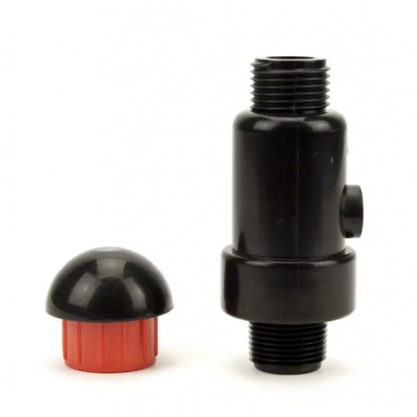 Воздушный клапан с наружной резьбой 3/4 - применяется в системах капельного орошения для предотвращения завоза системы (т.е. пищеварения воздуха). Монтируется в самой высокой точке магистрали, так как там обычно скапливается воздух.Клапан изготовлен из первичного ПВХ, что обеспечивает его долговечность, стойкость к воздействию ультрафиолета перепадов температуры.